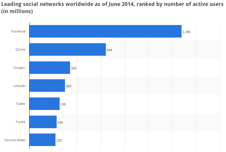 The graph below gives you a good comparison of the number of active users on several leading social networks: